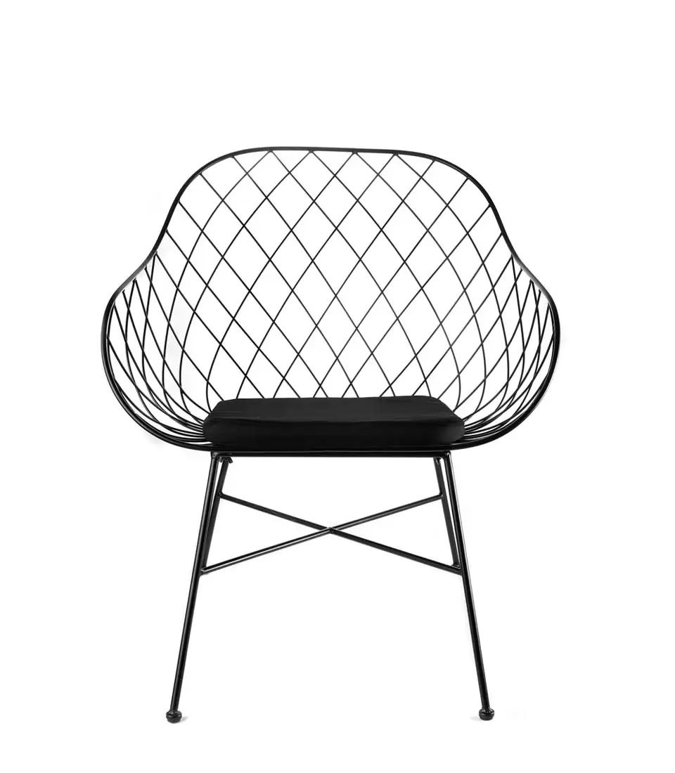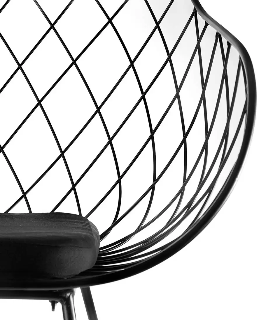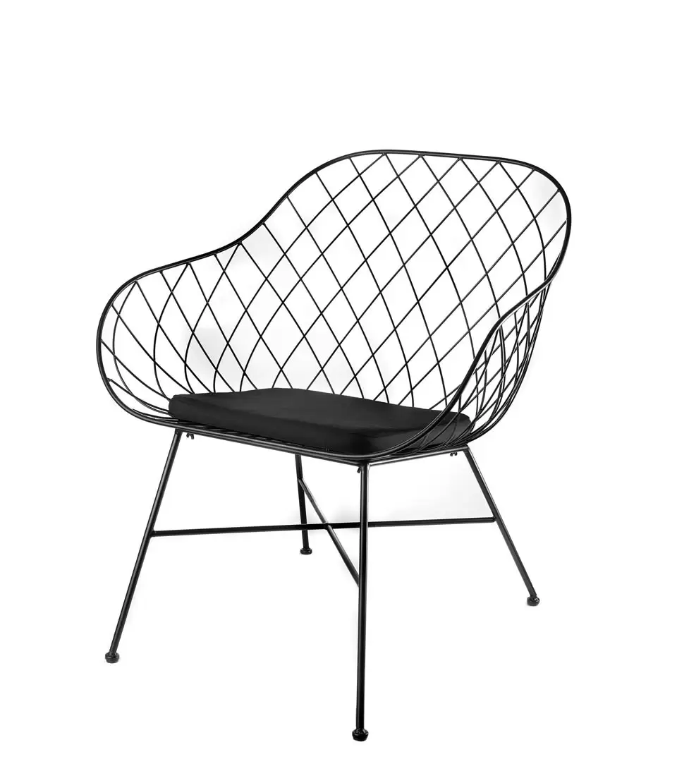 Poltroncina in metallo nero con cuscino nero in cotone. Ideale per chi ama lo stile urban. Un dettaglio dall’eleganza minimal per arredare gli ambienti casa.