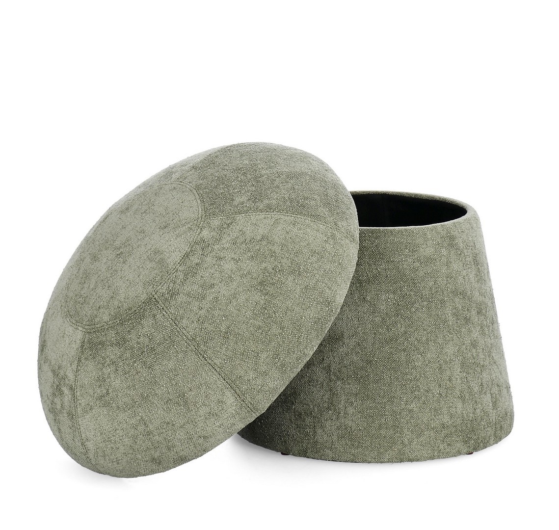 Pouf con struttura in mdf e compensato e con rivestimento in poliestere effetto ciniglia.