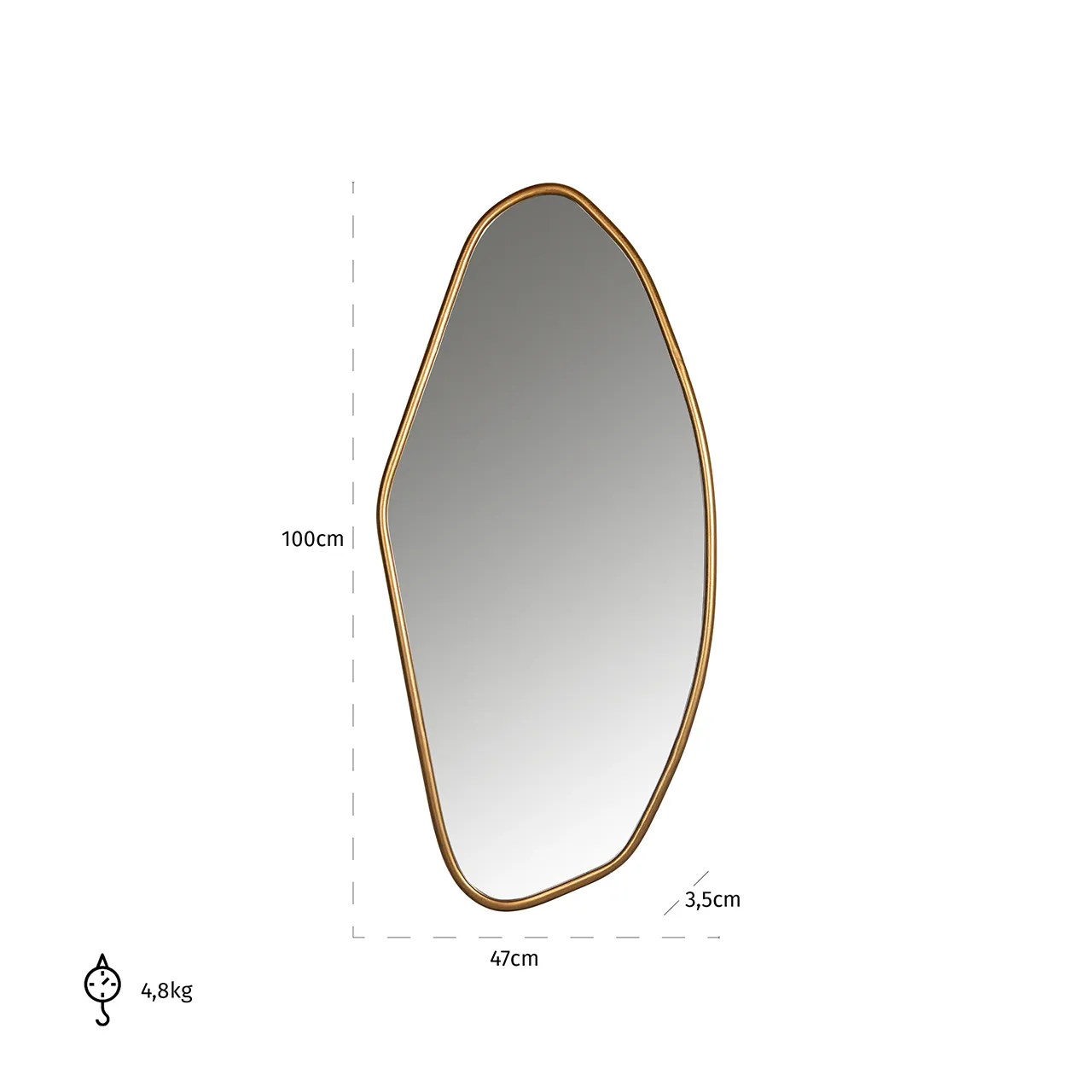 Specchio color oro, realizzato in ferro, MDF e specchio